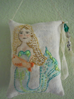 Still in "Mermaid mode"...maybe it's because Summer is almost over ? These little stitched bits are fun to work on in between bigger projects . My old sketchbook is great inspiration!